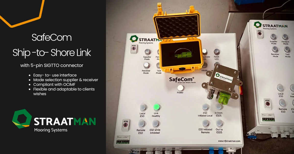 Straatman recently delivered two Small-Scale SafeCom Ship-to-Shore Link (SSL) systems to a client in South America. These systems support safe communication between terminals and vessels during cargo transfer operations. Both systems are equipped with 5-pin SIGTTO connectors. They are designed for installation on both the terminal side and the Floating Storage Unit (FSU). This configuration ensures safe and reliable communication during oil and chemical transfer operations.